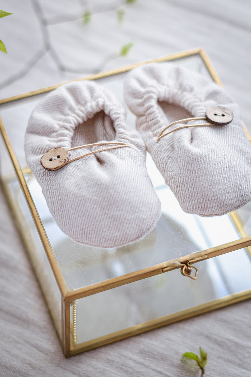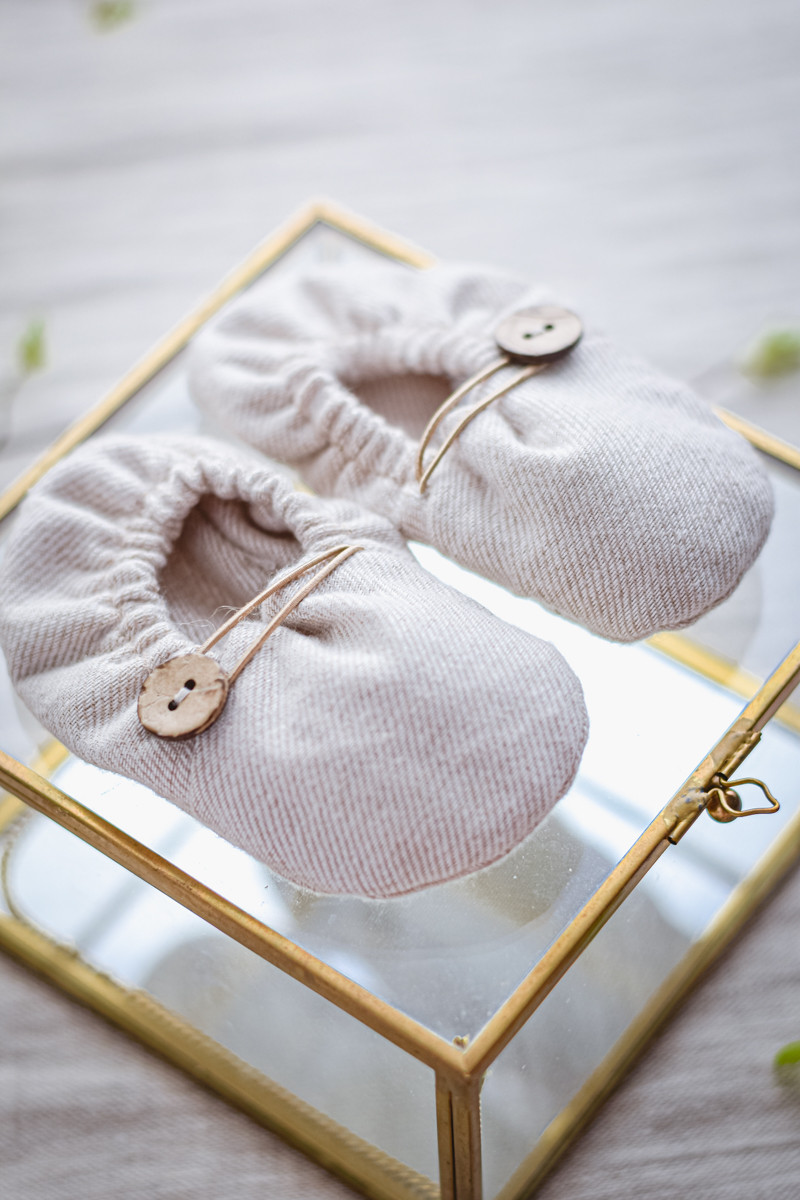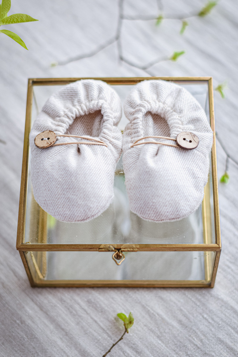 Uzupełnij wizytowy zestaw swojego synka o miękkie bamboszki w kolorze Light Beige. Wykonane z tej samej szlachetnej mieszanki lnu i wiskozy co nasze spodnie i kamizelki, stanowią idealne wykończenie stylizacji na Chrzest Święty lub roczek.
