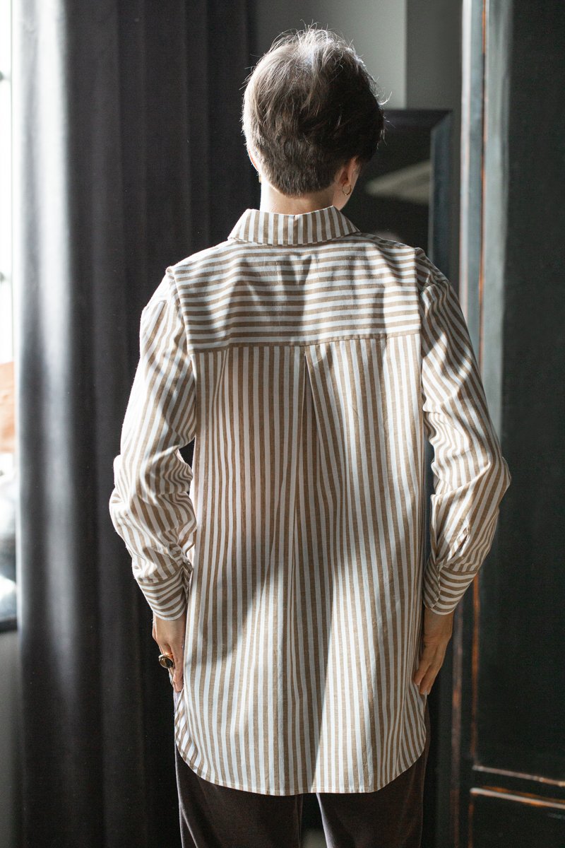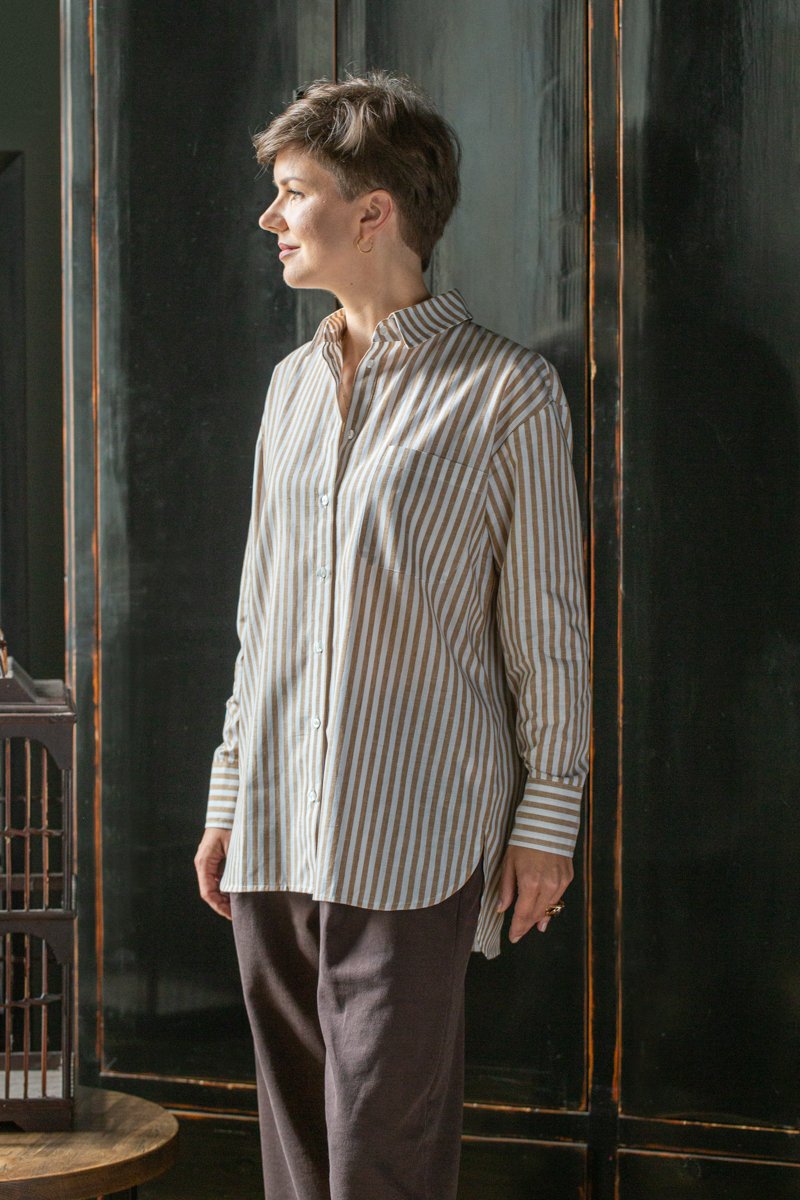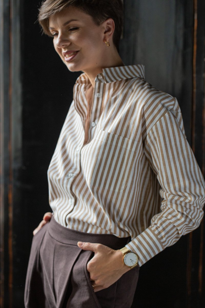 Klasyczna koszula oversize w orzechowe paski to wybór dla kobiet ceniących sobie swobodę i kochających połączenie klasycznych krojów z nowoczesnym twistem. Stwórz swoją kapsułę z koszulami Kameralna & Lilen