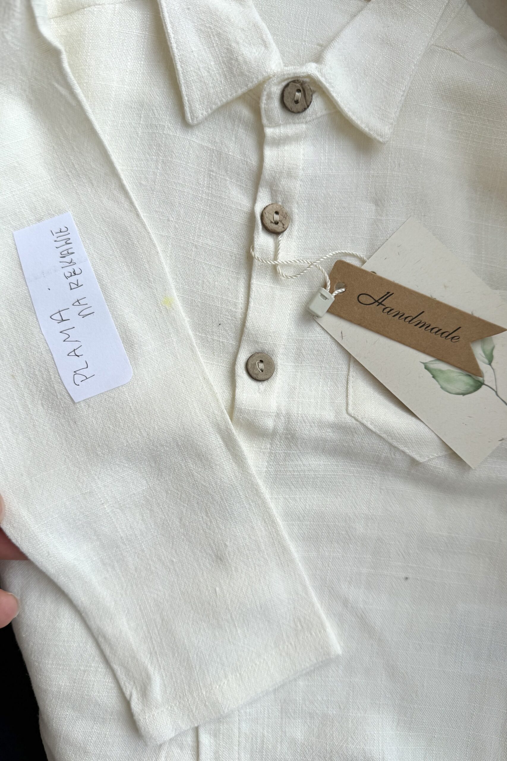Koszula posiada wadę w postaci małej żółtej plamki z tyłu rękawa. Plamka ma średnicę ok 4-6 mm i kolor jasno-żółty.