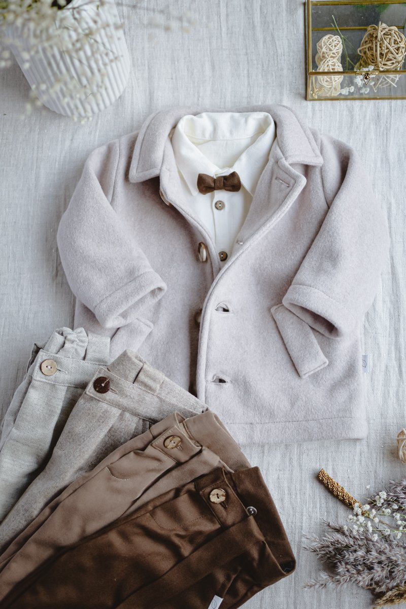 Beżowy płaszczyk dla chłopca – ponadczasowa pamiątka