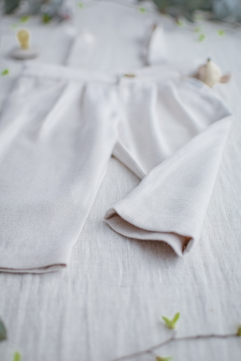 Wskazówka od Lilen: Ten zestaw przepięknie komponuje się z naszymi lnianymi bucikami-niechodkami w tym samym kolorze – light beige.
